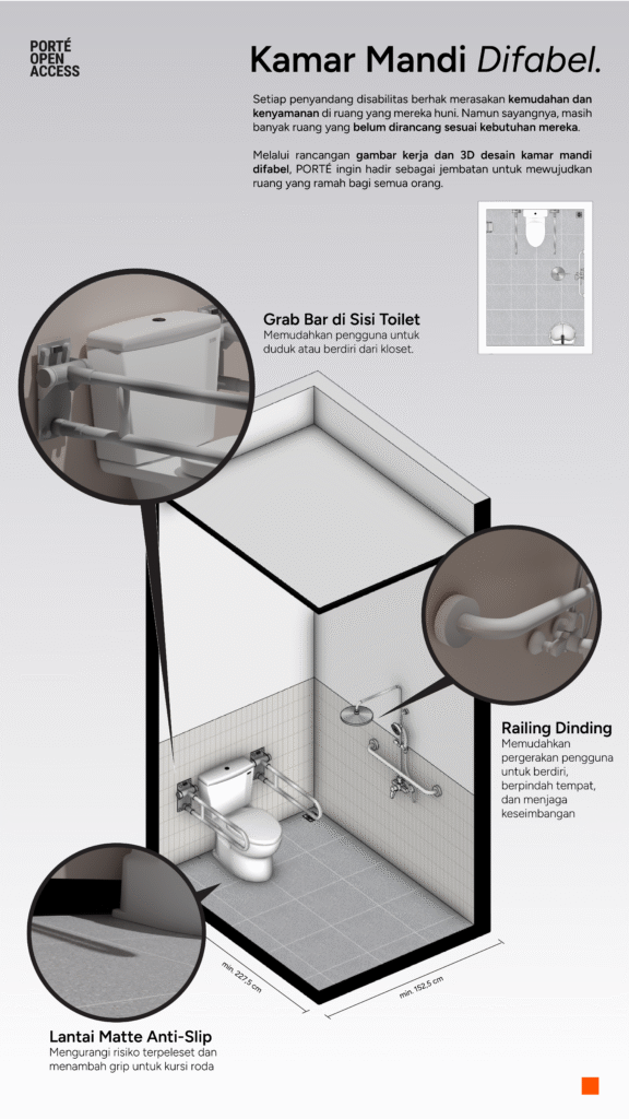 PORTE Open Access (POA) adalah open-source library berisi desain arsitektur untuk mendukung aksesibilitas bagi kelompok rentan: difabel, anak-anak, lansia, ibu hamil atau siapapun yang butuh ruang lebih nyaman. #PORTEuntukSemua
